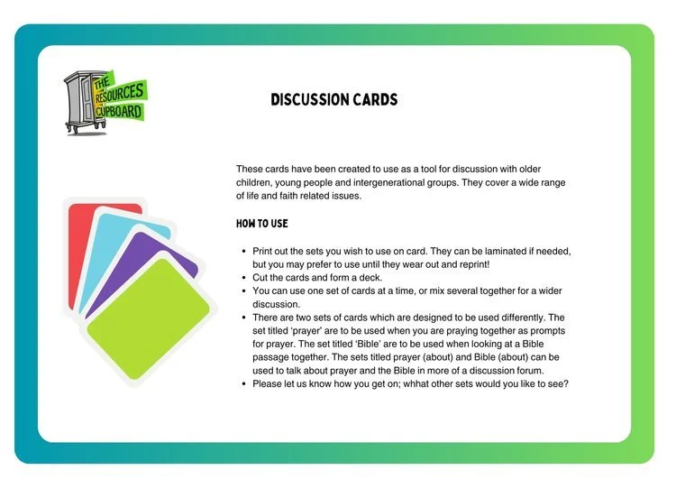Print, cut and use this set of discussion cards with children, young people and intergenerational groups, covering a wide range of topics from school to prayer, tech to relationships.